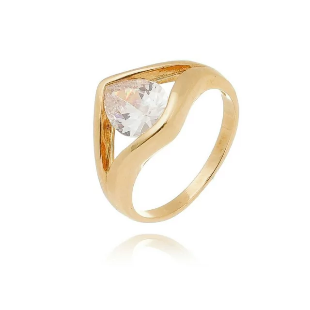 Anel losango detalhado com 1 zircônia oval ao centro.