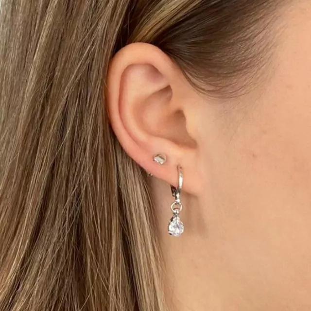 Brinco click articulado com 1 gota de zirconia pendurada.