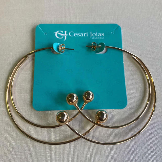 Brinco argola grande dupla com 2 bolas maciças nas pontas.