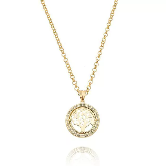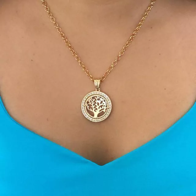 Colar de elo português médio com pingente árvore da vida e ao redor cravejado de zirconias.