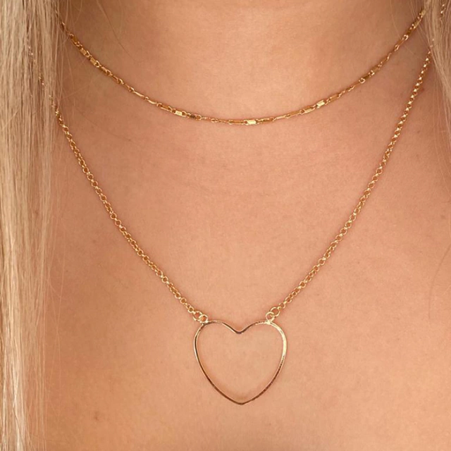 Colar duplo com 1 corrente 50cm de elos português com 1 pingente coração, e outra corrente 40cm de chumbinho.