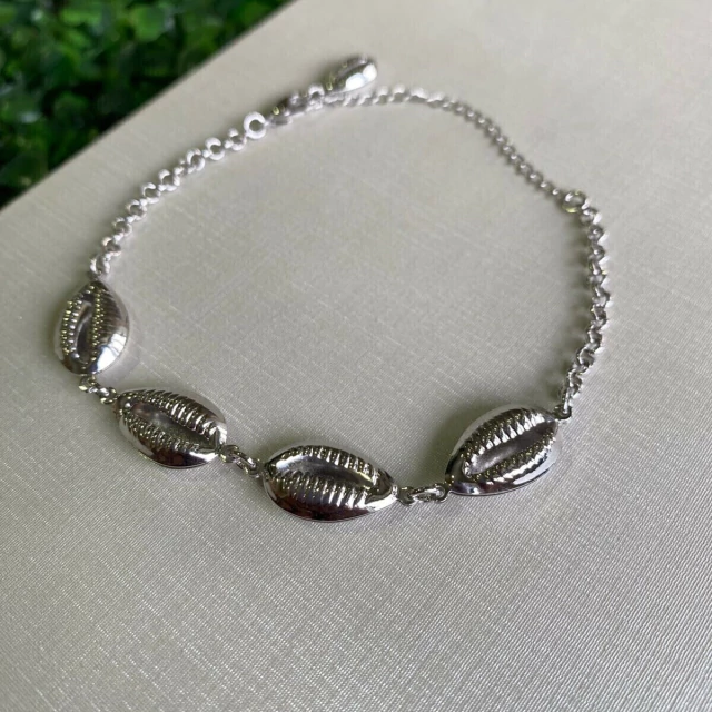 Pulseira de Elo Portguês com 4 Búzios Folheado em Ródio