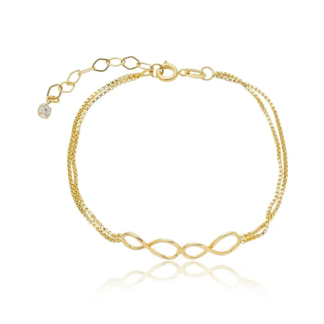Pulseira dupla corrente veneziana com 2 símbolos do infinito ao centro e 1 zirconia na ponta.